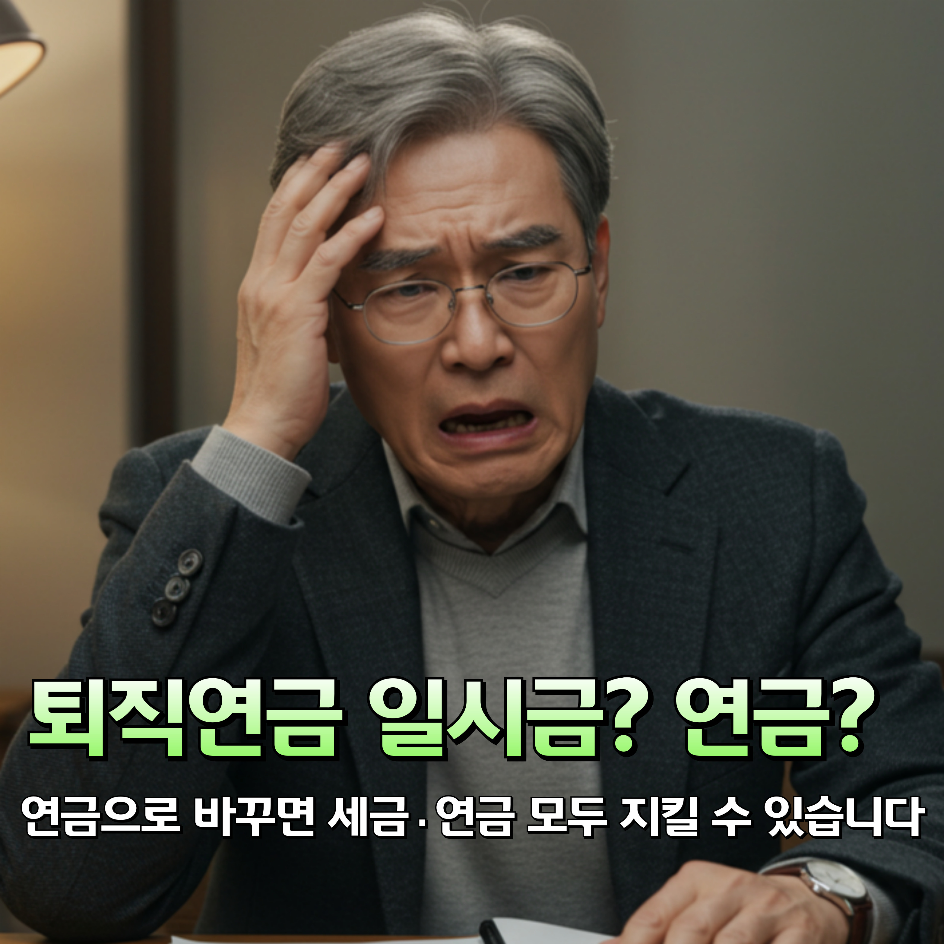 - 혼합 수령 전략 — 자녀 결혼·주택수리 등 목돈이 꼭 필요하면 일부만 일시금으로, 나머지는 연금으로 받아 세금·기초연금 모두를 지키세요.